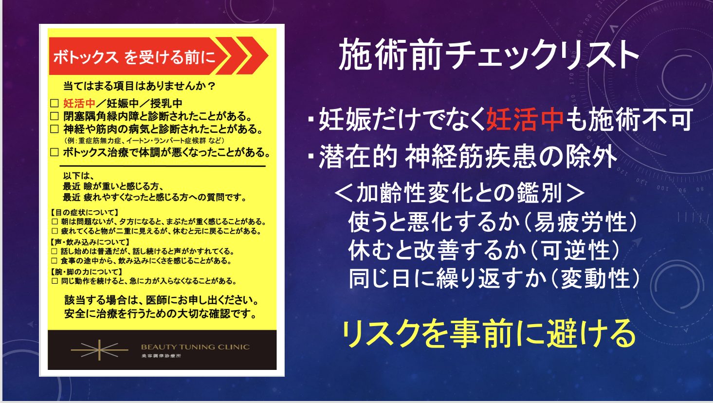 私は注入治療の中でも、ボツリヌス製剤を取り扱うことの「基礎」と「制御」についてお話ししました。 本日はその発表内容に基づき、当院が守り抜いている安全へのこだわりについて共有いたします。