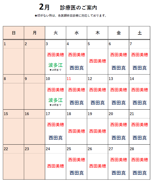 2026年2月診療医のお知らせ By Beauty Tuning Clinic -美容調律診療所- in お知らせ Posted On 1月 14, 2026 皆様のご来院をお待ちしております。 休診日/日曜日・月曜日 ※当院は完全予約制です。