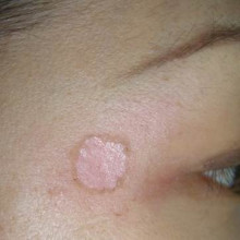 ②レーザーから1週間後、カサブタが出来、それが一部取れた状態