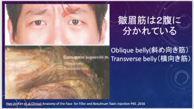 ボトックスは打ち方次第。眉毛の動きをほぼ完全に止めることも、動きを少し残すことも可能です。目的とする筋肉に適切な量を打てば良いのです。ボトックス打つ前に「どれどれ、君の筋肉を見せてもらおう。そこに打つね。」と、生きてる方の顔の皮を毎回剥く訳にはいかないでしょうから、解剖を勉強し、シワの形態から皮膚の下の表情筋の走行を想像するのです。そして、適量を打つのです。Just do it!