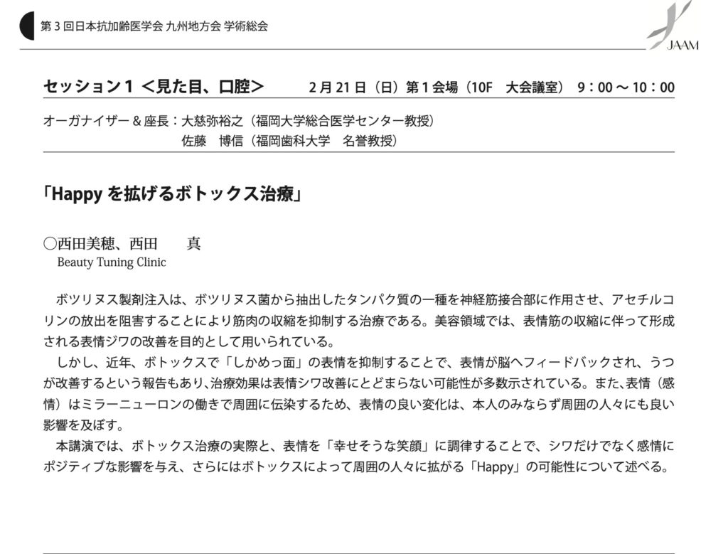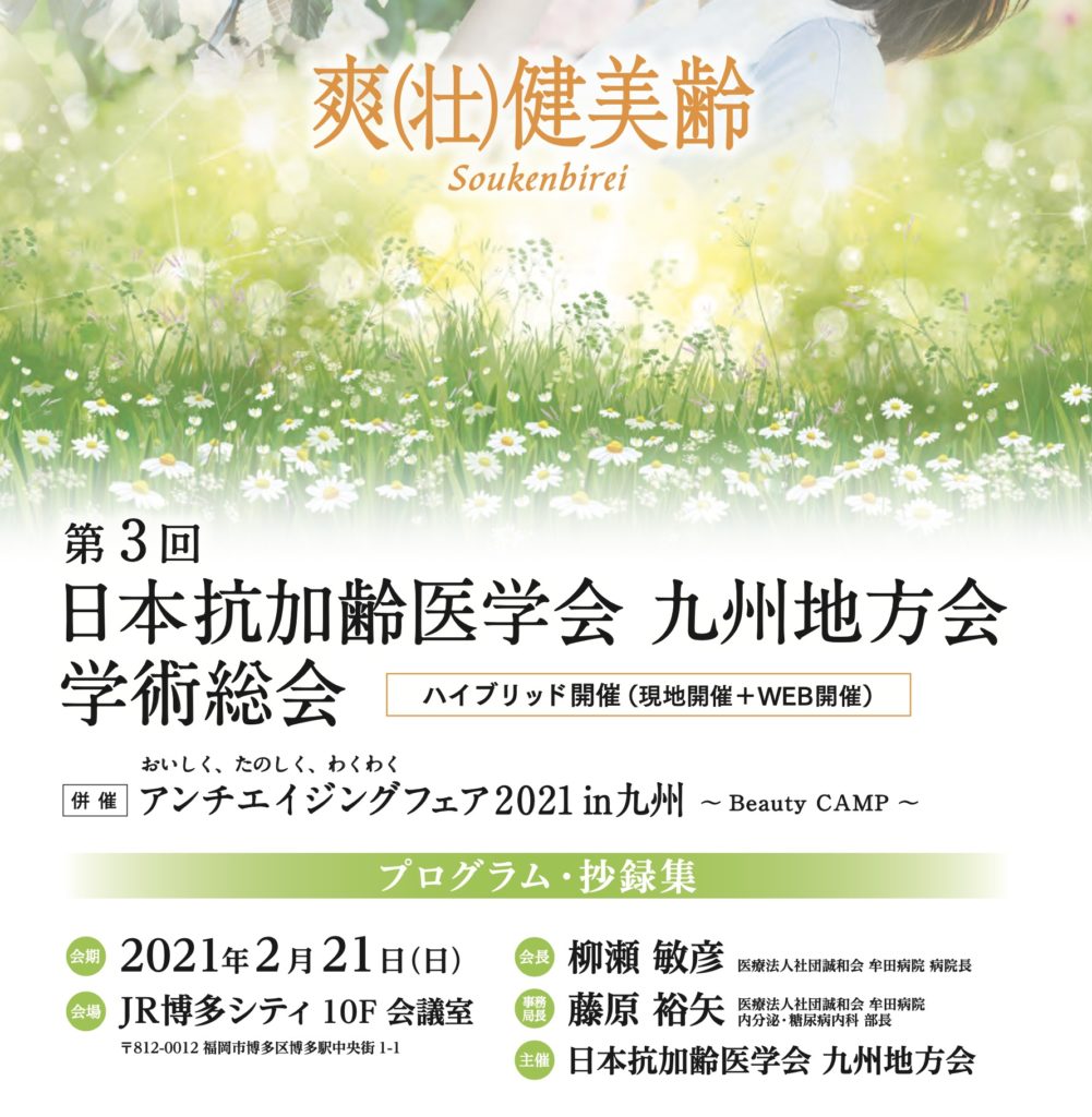 2021年2月21日(日)抗加齢医学会 九州地方会で 「Happyを拡げるボトックス治療」という表題で講演します。