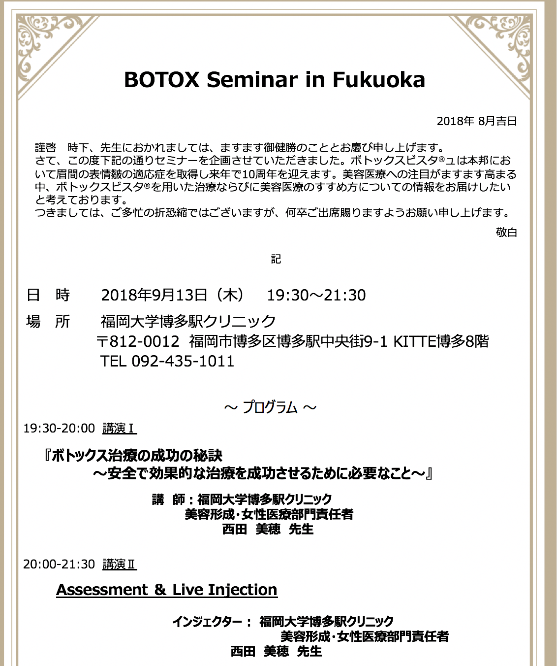 先日はアラガン社からのご依頼で、ドクター向けのボトックス治療のセミナーを行いました。