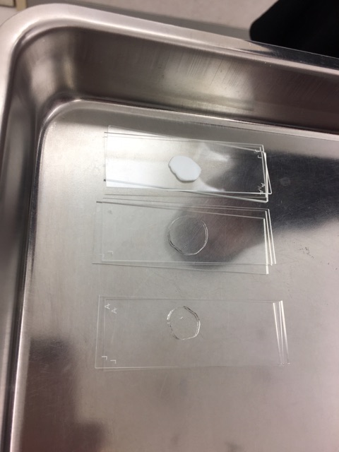 3種類の注入に用いられる製剤を同じ分量だけガラスに出して、挟んでみます。