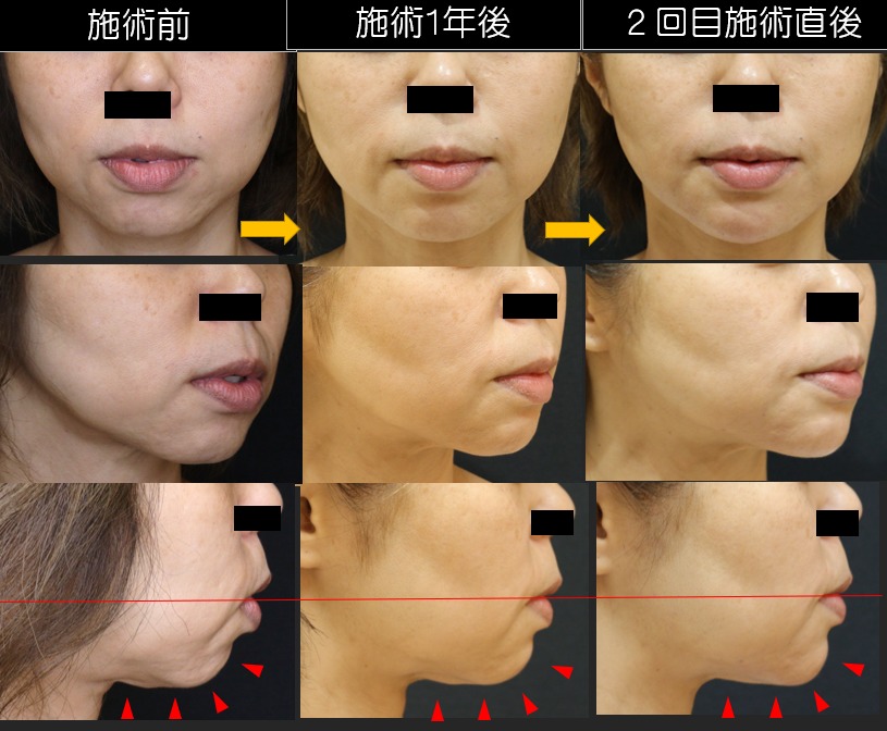 横から見たラインがかなり整いましたね。また、顎下のモタツキの改善にもご注目ください。