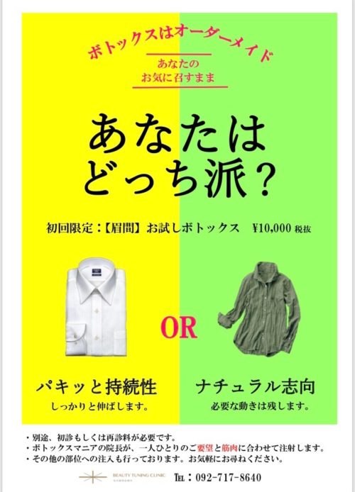 Posted on 06 8月 2019 / Off / Beauty Tuning Clinic -美容調律診療所-ボトックスはオーダーメイド ボトックスについて ブログ, 3)ボトックス治療・しわ治療