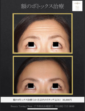 Posted on 04 12月 2018 / Off / Beauty Tuning Clinic -美容調律診療所-額のボトックス注射治療 ビフォーアフター& ボトックスはシワを取る注射ではありません。 ボトックスについて ボトックス, 症例