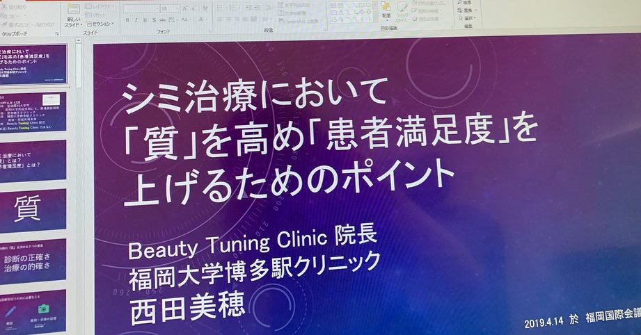 Posted on 21 4月 2019 / Off / Beauty Tuning Clinic -美容調律診療所-この1週間:セミナー(福岡)→シンポジスト(東京)→セミナー(東京) シミ治療について ブログ, 2−1)シミ治療(オバジゼオスキン・外用療法), 2−2)シミ治療(光治療・レーザー治療), 日常2)講演・セミナー講師・執筆論文・教科書・専門医