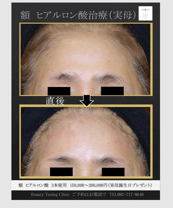Posted on 11 11月 2019 / Off / Beauty Tuning Clinic -美容調律診療所-額へのヒアルロン酸注入症例(実母72歳)←誕生日プレゼント ボトックスについて, ヒアルロン酸について ヒアルロン酸, 症例
