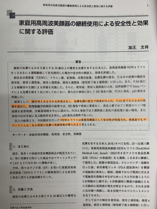 「NEWAリフトは家庭用機器として安全性が担保され、効果面でもダウンタイムなくある程度の皮膚の美顔効果が得られると考えられる。」 加王文祥先生
